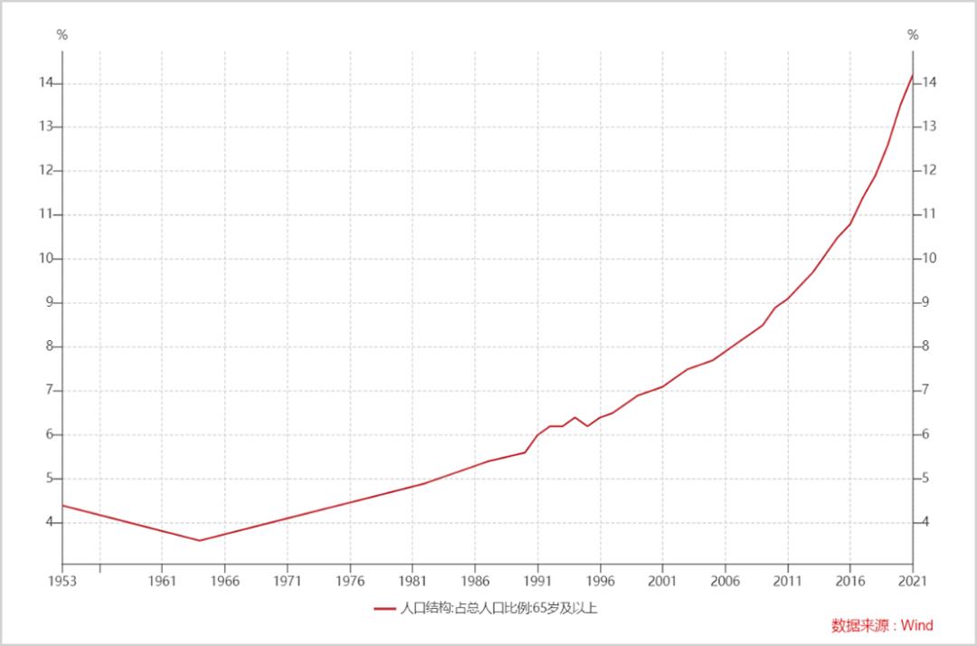 2001年,中国65岁以上人口达到8800万,占总人口比例超过7%,标志着进入老龄化社会;到了2021年末,我国65岁以上老龄人口达到2.01亿,占总人口比重为14.2%,开始进入深度老龄化。
